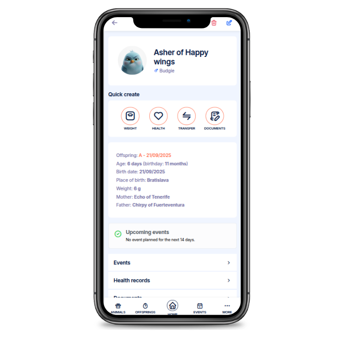 Create a detailed profile for any animal, logging all key identifying information and lineage data. You instantly establish the foundation for comprehensive, long-term management.