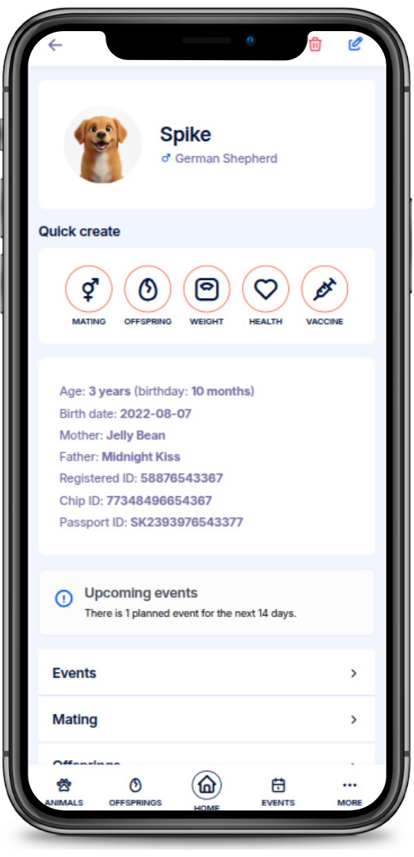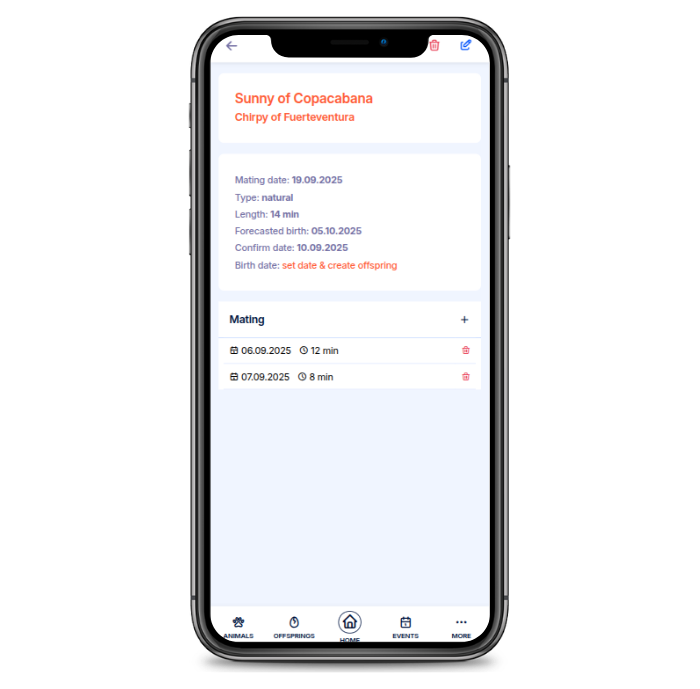 Our mating planner simplifies the most critical step in breeding. Simply log the female and male, and the system instantly calculates the estimated due date.