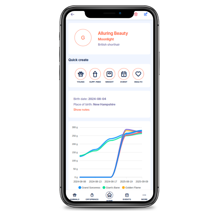 Track the progress and health of every young animal, from birth to handover. Simplify your records, monitor individual growth metrics, and maintain a complete health history within one seamless, organized system.